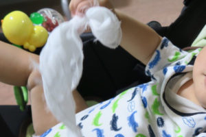 抱っこしてた次男を乾いたオムツに代えて看護師さんに渡す。