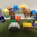 ブロックと組み立て式のハウスで遊ぶことができます。我が家の双子は2歳0ヶ月で組み立て式のハウスはあっという間に更地になってしまうと思うのでまだ組み立てていませんが、