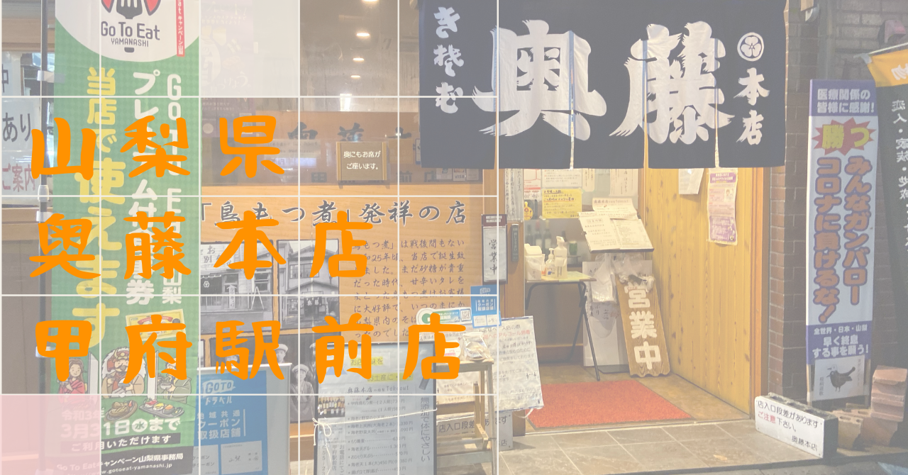 Go To トラベルを利用して山梨へ行ってきました。泊まったホテルは甲府駅前にある2020年にできたばかりの「城のホテル」。車を持っていないこともあり、駅前で夕食を取りたくて奥藤本店へ。事前に予約していたためスムーズに入店できました。